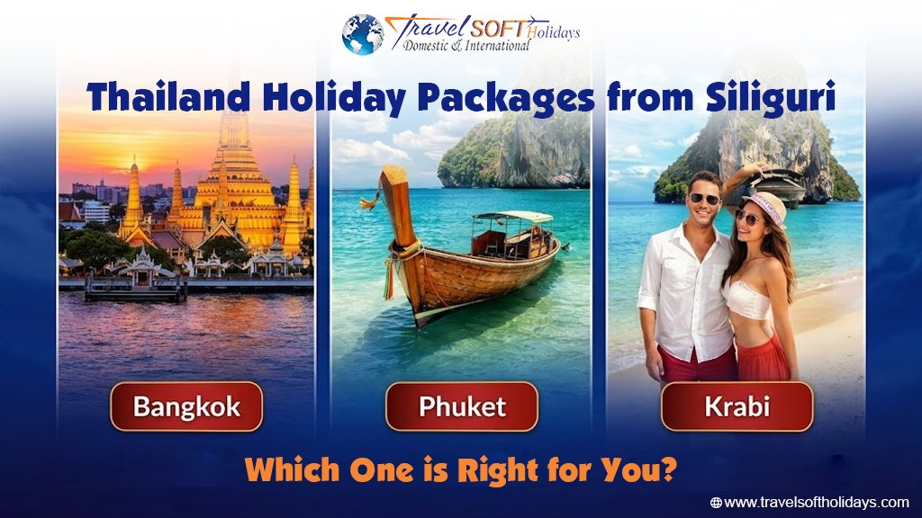 Just imagine distancing yourself from your daily routine and landing in an exotic place. You would love to experience golden temples, beaches of turquoise color, and bright nightlife. You would enjoy the tasty street food. It is the most preferred international travel destination by Indian travelers. Having a lot of options may make it hard to decide where to go. That is where Thailand holiday packages from Siliguri come into the picture. They make your travel plans easy and help you enjoy Thailand. Bangkok, Phuket, or Krabi, which one suits you? We will take a tour of each destination so that you can make your choice. Why Book Thailand Holiday Packages from Siliguri? Start your journey right here in Siliguri when planning a Thailand getaway without any stress. Flights, along with stays, so you land knowing where to sleep at night. Rides between spots? Already sorted before departure. Exploring temples or markets happens smoothly thanks to local guides who know every corner. Everything fits as per your own interests and needs. Rather than having to plan all the things yourself, you receive a proper arrangement from travel agencies. Siliguri to Thailand packages are very convenient and economical, whether you are going with family, friends, or a couple. Which One Do You Choose for Your Next Trip- Bangkok, Phuket, or Krabi The choice between Bangkok, Phuket, and Krabi totally depends on the type of traveler you are. Love crowded street markets, great shopping, and ancient temples? This city is for you! Crave the idea of swimming at a golden sandy beach, participating in water sports, and experiencing amazing nightlife? Phuket will be calling your name! If you’re an island hopper who seeks peaceful, stunning limestone formations and peaceful locations, this would be Krabi! If traveling as a couple? Phuket or Krabi are very romantic. Traveling with the family? You will need Bangkok for variety. Are you a first-time international traveler? Just go to Bangkok! Here you will get to know about the cities you would love to visit. Bangkok- City of Energy and Culture Bangkok is the best place to be in case you like busy streets, shopping, culture, and so on. What you enjoy: Iconic temples, Wat Arun and Wat Phra Kaew Bright street markets and posh malls Nightlife and rooftop bars Delicious Thai street food. Bangkok is the perfect place to enjoy both old and new city life. Thailand has a lot of holiday packages starting with Bangkok in Siliguri. Best For: First-time international travelers Shopping lovers Food enthusiasts Phuket — A Paradise for Beach Lovers Phuket is known for exciting beaches and vibrant life. If you need both fun and relaxation, Phuket is a good choice. What to Expect: Clear beaches such as Patong, Kata, and Karon Water sports and island tours Bangla Road Nightlife. Five-star resorts and spas Thailand holiday packages from Siliguri include packages to Phuket with the neighboring islands as a total beach experience. Best For: Couples and honeymooners Beach lovers Party seekers Krabi – Peace, Nature, and Scenic Beauty If you love a peaceful area, then Krabi is the best place. It gives breathtaking natural landscapes, limestone cliffs, and clear waters. What Do You Enjoy? Ao Nang and Railay beaches Island hopping tours Beautiful scenery and sunsets Relaxing environment Krabi is the most popular province in Thailand for vacation packages at Siliguri by tourists who want to relax and see beautiful scenery. Best For: Nature lovers Couples who want to have silence. Customers seeking a leisure trip. Many tourists love to visit all three destinations. Bangkok, Phuket, Krabi. The tour will provide you with the best of all- a city, a beach, and nature. Thailand holiday packages in Siliguri will enable you to visit several destinations in a single trip for the logistics. Best Time to Visit November to February is peak season — cool, dry, and ideal. March to May is hot but manageable. June to October is the monsoon season with lower prices. Month Season Weather Ideal For November – February Peak Season Cool, dry, and sunny Best time to visit — ideal for all travellers March – May Summer Hot and humid Budget travellers; fewer crowds June – August Monsoon Heavy rains, occasional storms Not recommended for beaches; good for budget deals September – October Late Monsoon Rains easing gradually Off-season deals; lush green landscapes Destination Best Months Bangkok November – February Phuket November – April Krabi November – March Visa Information It is possible for Indian travelers to enter Thailand by obtaining a Visa on arrival that can extend to 15 days. It is a very convenient way to travel. This visa on arrival costs around 2,000 to 2,500, which must be paid at the airport. Long stays may require a Tourist Visa to be applied for before departure from the Royal Thai Embassy, allowing a stay for a maximum of 30 days. Booking a holiday package for Thailand from Siliguri, via Travel Soft, ensures our representatives provide end-to-end assistance with the entire process of obtaining a visa. Advantages of Booking With Travel Soft Choosing a proper package with a trusted travel agency like Travel Soft will assist you in getting the best Thailand tour packages. Herein lies the reason as to why it matters: Saves Time and Effort: International travel could be very time-consuming, starting with the flight and hotel bookings, and the planning of the itinerary day by day. Good Pricing and Discounts: They usually offer competitive prices. They offer deals that are cheaper than individual bookings. You will enjoy discounts, seasonal deals, and reduced rates. Guided Tours and Assistance: Every package provides a guide. So you cannot miss the popular attractions. On-ground support is also given, and this is very useful in case of any problem during your trip. Hassle-Free Journey: Everything is properly coordinated, be it airport transfers, hotel check-ins, and sightseeing schedules. Thi